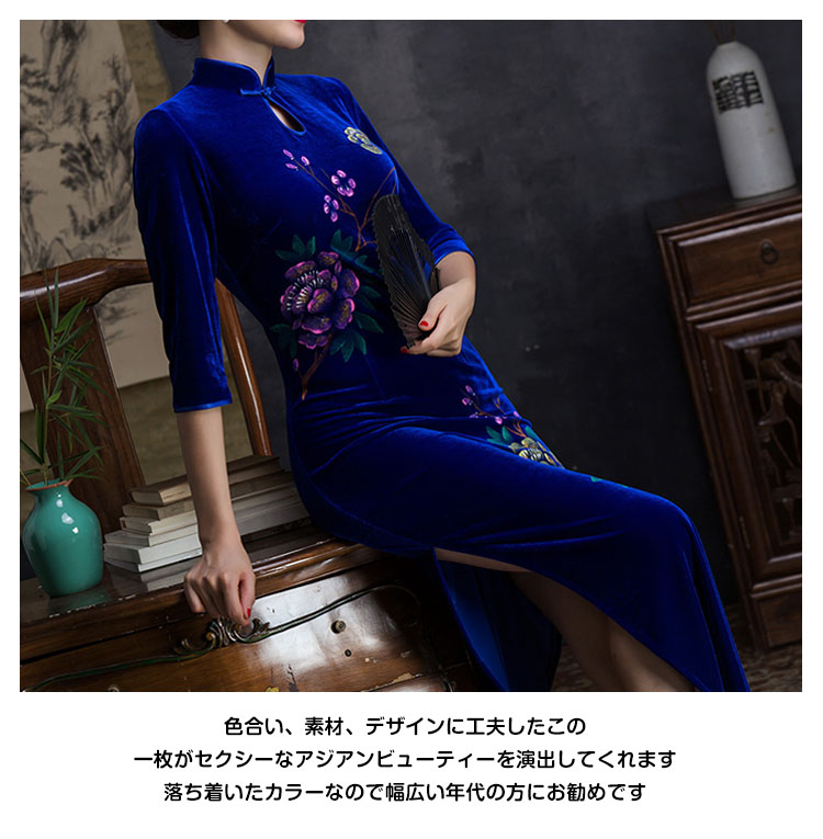 | 柔らかでナチュラルな手触りのチャイナドレスアジアンスタイルのチャイナドレスが東洋女性独特の魅力を全面的にアピールロング丈とミモレ丈、二つをご用意し、どれも優雅でお好みに召し上がってください色合い、素材、デザインに工夫したこの一枚がセクシーなアジアンビューティーを演出してくれます落ち着いたカラーなので幅広い年代の方にお勧めです | |