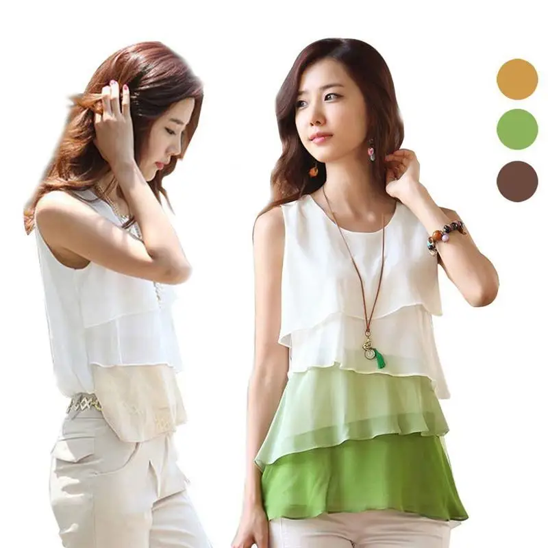 Blouse Vest :Sleeveless Cheap Chiffon Shirt