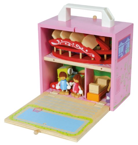 -. Feature : Boxsets are all the fun without the mess. / Beautifully designed wooden playset opens for creative, imaginative play. / Build your world and have adventures with dolls and all the accessories. / Set contains: Dollhouse Box, 2 bendable dolls, Bedroom set with bed, piano and piano stool, Kitchen set with table and sink/range top, Bathroom set with bathtub and sink, Chaise Lounge, Swing, Staircase and Balcony. / For ages 3 and up. / Ages 3+.