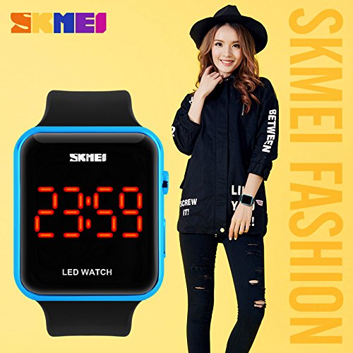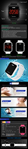 -. Feature : WATRE RESISTANT To 164 Feet★: with High-transparency Resin Mirror and Stainless Steel Back Cover, This Sport Watch Possess Superior Water Resistance and Can be Worn When You are Showering and Swimming. Please DO NOT Operate the Button in the Water.And in case of damaging waterproof ring,please keep it away from steam and hot water / MULTIPLE FUNCTIONS★:Auto Date,Alarm,Water Resistant,LED display,Shock Resistant,Stop Watch,Back Light;perfect for both outdoor and indoor sports, such as running, climbing,fishing, ect / Digital watch★: Fashionable sporty dial design, military style outlook. Large Dial and numbers with light, show time clear in the dark. / Mens watch★: Appeals to mens, especially to those who like doing sports, shock resistant, stop watch, military 24H time mode, and LED back light functions make it perfect for all kind of sport and daily use. With retail package, good gift for families and friends. / EXQUISITE DETAILS★: High Quality Movement Ensures the Accuracy of the Time Keeping; Hard and Durable PC Material Shell; Soft PU Watch Band bring comfortable wear experience; Stainless Steel Watch Band Buckle; EL Luminous Film Ensures the Clarity of Back Light Time.