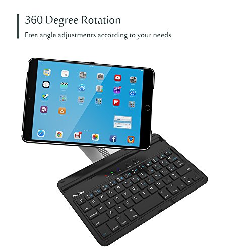 iPad mini 4 Keyboard Case, Procase Apple iPad mini 4 Tablet Wireless Bluetooth Keyboard Case, 360 Degree Rotation, Slim, Multiple Angle Viewing, Stand Protective Case for iPad mini4 (Black)