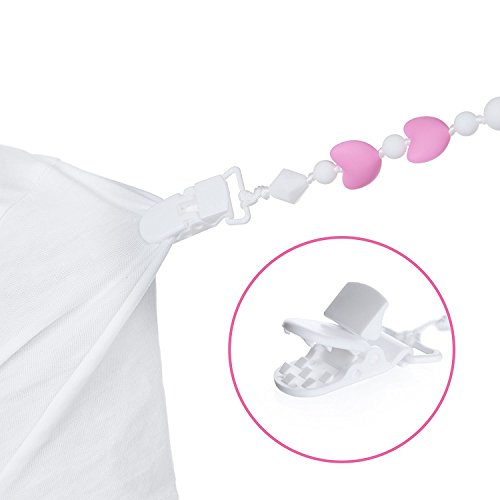 - BEST QUALITY BABY-SAFE 100% NATURAL FOOD-GRADE SILICONE! SAFETY FIRST: we use only USA Certified BPA Free Food Grade Silicone, non-toxic & safe to chew on. It can be cooled. Each bead is individually knotted for increased safety. Plastic clip is compatible with any pacifier brand, connects securely, but won't damage anything, can even be used one handed & most important, there's no metal to teeth on or rust. Our set would accessorize any little girl’s outfit from newborn to toddler!