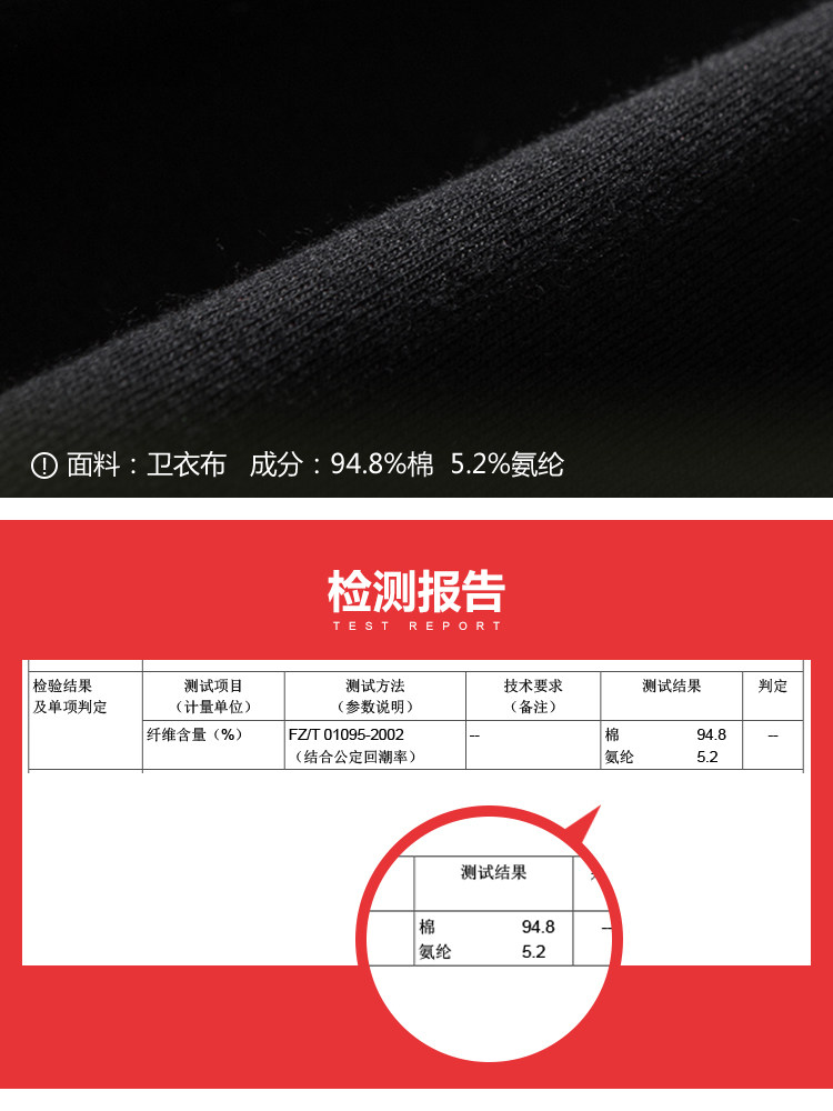 | 面 料:94.8%棉 5.2%氨纶颜 色:黑色 |