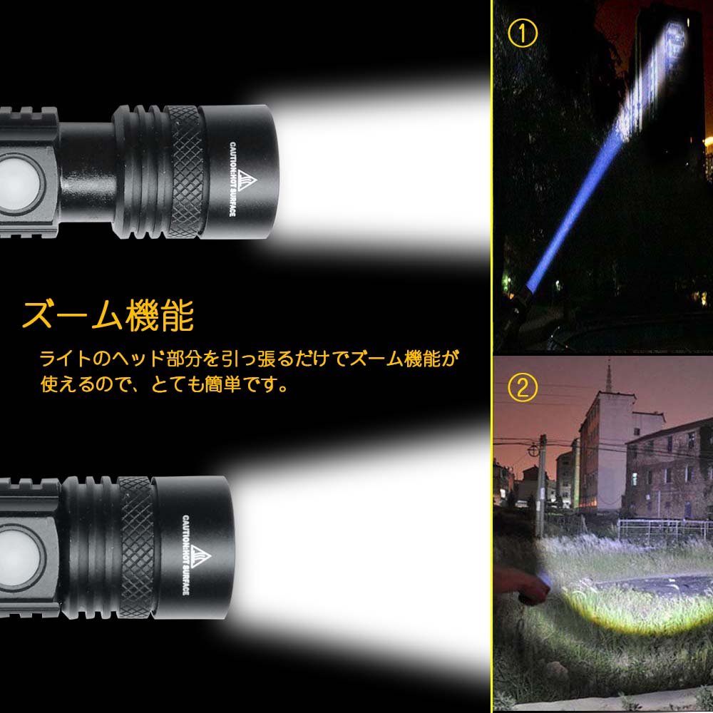 ● In daily lighting, camping, fishing in the evening, mountain climbing, bicycle, for crime prevention and disaster prevention, etc. Rechargeable flashlight is a necessary weapon.