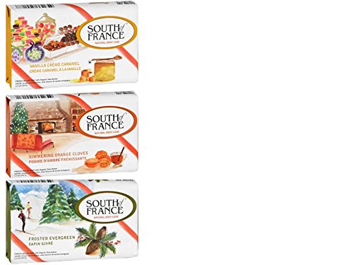 -. Title : South Of France Natural Body Care Bar Soap 3 Fragrance Variety Bundle: (1) South Of France Vanilla Creme Caramel, (1) South Of France Simmering Orange Cloves, and (1) Frosted Evergreen, 3.5 Oz. Ea.