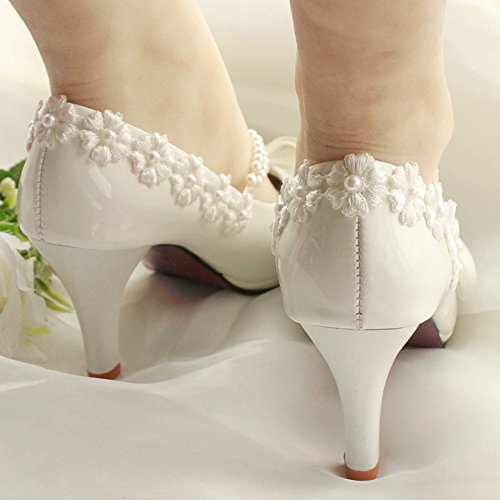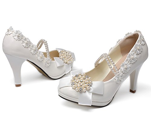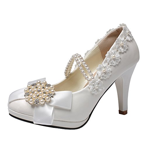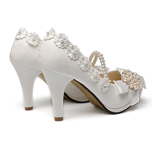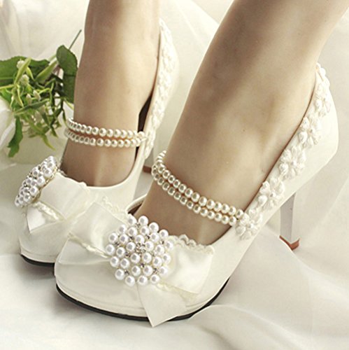 Getmorebeauty Women's With Pearls Across Ankle Top High Heel Wedding Shoes