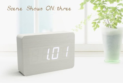 GREENWON Pure White Mini Fashion White LED Wooden Clock Digital Imitation Wood Alarm Desktop Office Home Furniture with Time Date Temperature Display Voice and Touch Activated