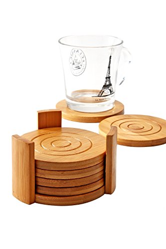 -. Brand : Juvale -. Color : Brown -. EAN : 0096362219440 -. Feature : Heavy duty bamboo coaster set with 7 coasters and custom holder / Made from durable eco-friendly bamboo / For use with hot or cold drinks / Easy to maintain and clean - simply wash with mild soap and water. Dry thoroughly / Dimensions: 4.3" x 4.3" x 2.7 -. Label : Juvale -. Manufacturer : Juvale -. Model : 6110083 -. MPN : 0 -. PartNumber : 0 -. ProductGroup : Kitchen -. ProductTypeName : KITCHEN -. Publisher : Juvale -. Studio : Juvale -. Title : Heavy Duty Bamboo Coaster Set - Absorbs Spills and Condensation - Contemporary Design - Includes 7 Coasters and Custom Holder - Tan - 4.3 x 4.3 x 2.7 Inches -. UPC : 096362219440