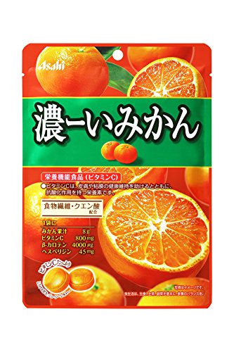 原材料:砂糖、水飴、ポリデキストロース、みかん濃縮果汁/クエン酸、V.C、香料、甘味料(アセスルファムK、スクラロース、アスパルテーム・L-フェニルアラニン化合物)、ヘスペリジン、カロテノイド色素