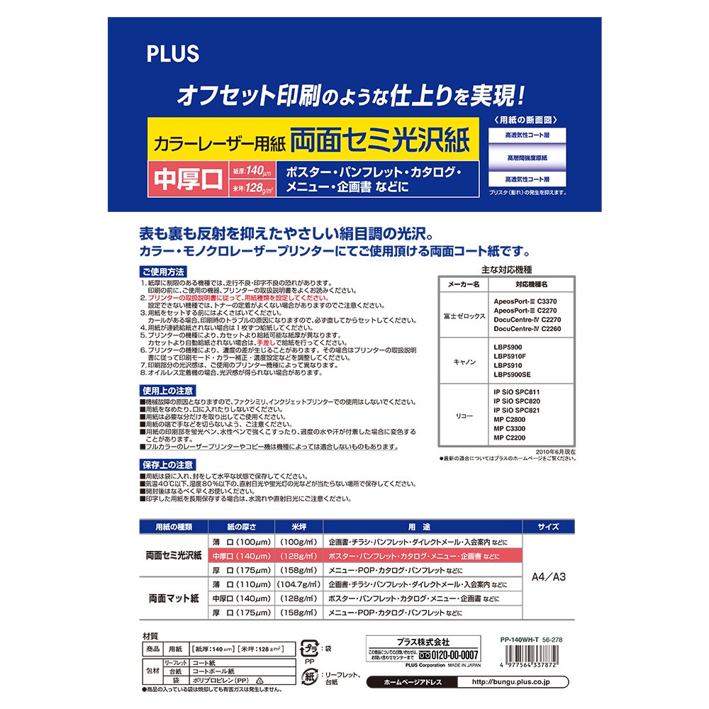 Thickness hole PP-140WH-T 56278 plus color laser paper double-sided semi-glossy paper in (japan import)