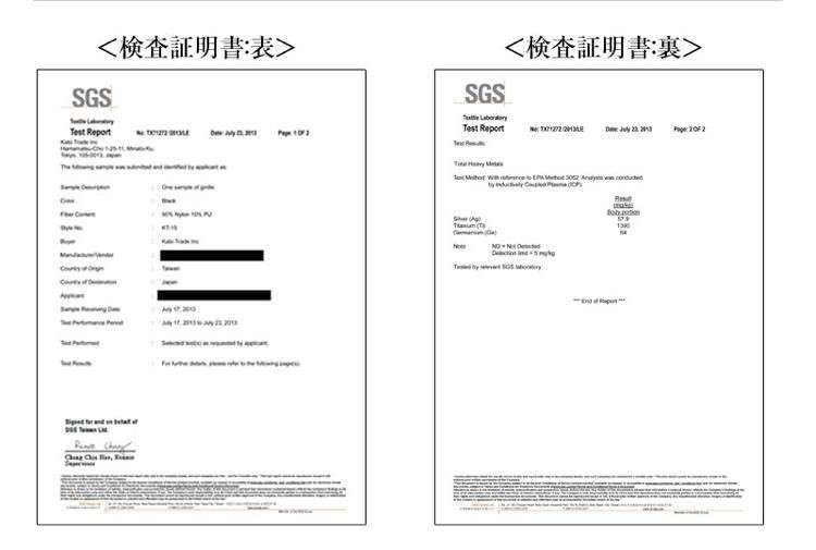 | 材質 | マイクロファイバーナイロン77% ポリウレタン(スパンデックス)23% ※生地にゲルマニウム・チタン・ナノ銀を配合しています。 |