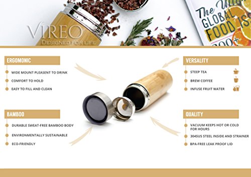 Tea Infuser Travel Coffee Mug - 400ml [13.5oz] Stainless Steel Bamboo Vacuum Insulated Tea Maker Flask | Fruit and Juice Infuser | Eco-Friendly Portable Pitcher Water Bottle from Vireo