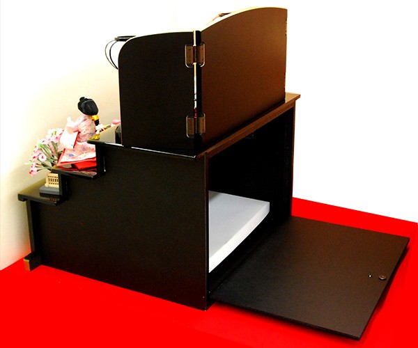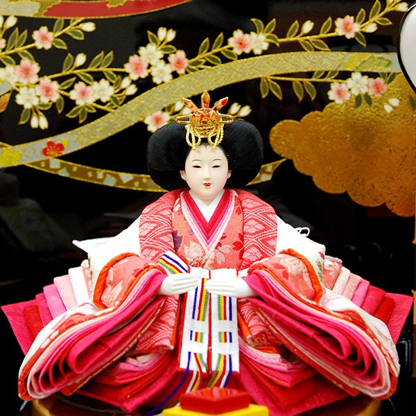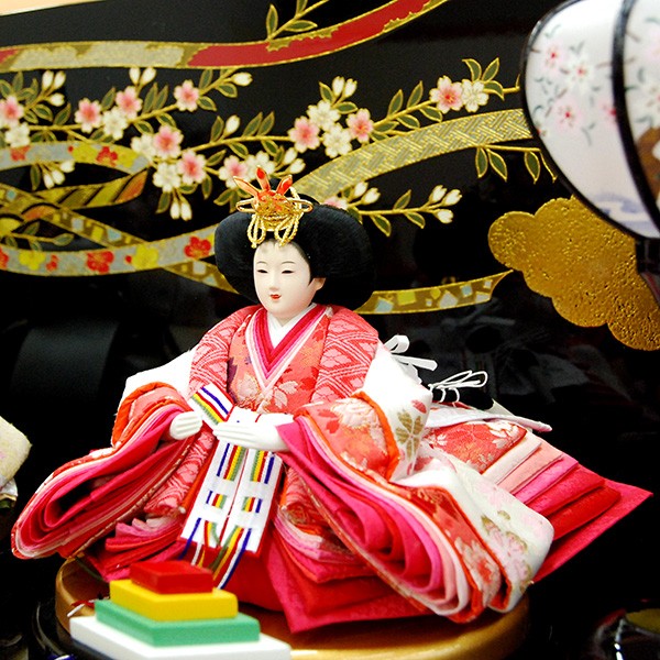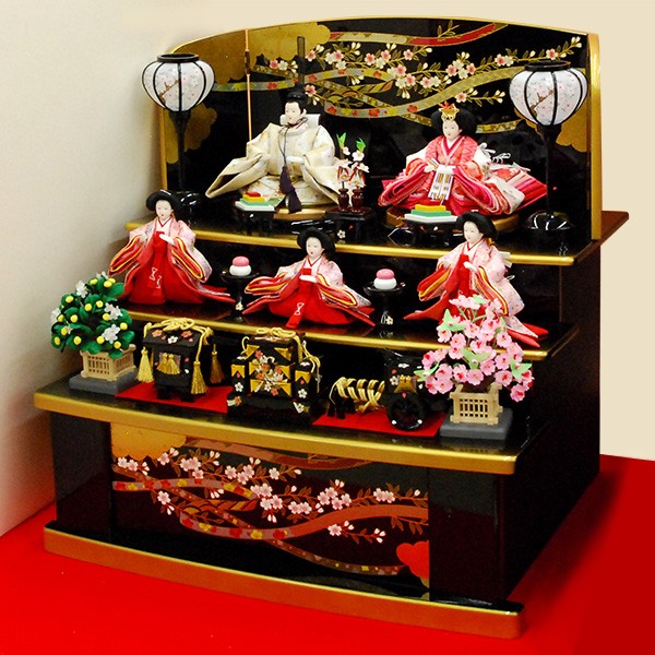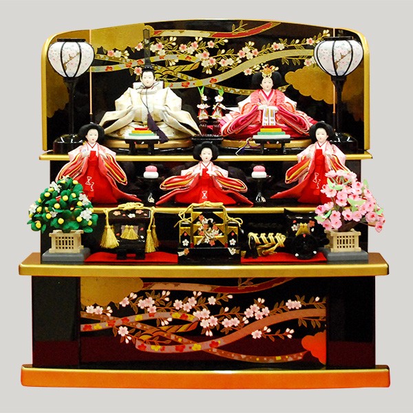 優しいベージュ色のお内裏セット。台座は人気の収納タイプの黒塗台です。黒塗台の淡い色合いのお人形は相性の良い収納3段飾りです。 ・和洋室に合う高級自然木使用の台座の雛人形飾り