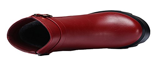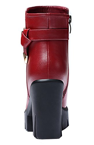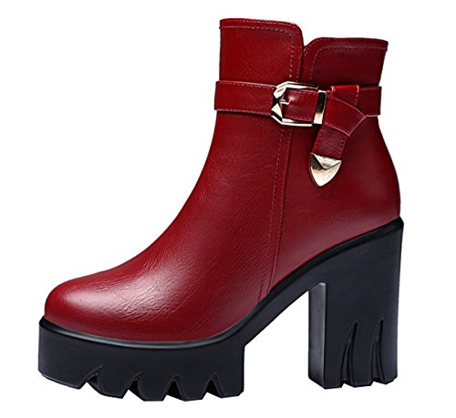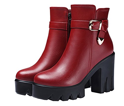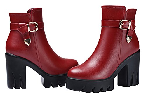 - Title : FreeRun Women's Fashion Fur Lining Platform Buckle High Heel PU Boots(6 B(M)US,red)