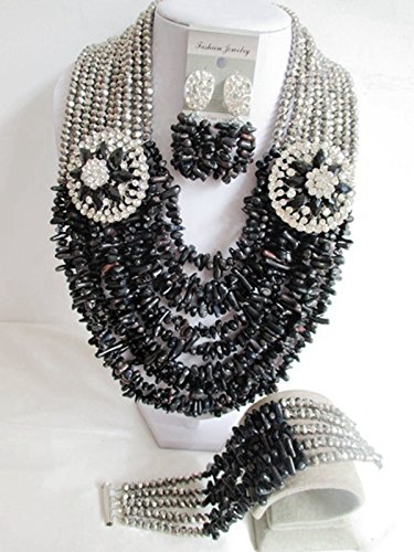 -. Title : laanc 10 Rows Red Coral Beads and AB Color Jewelry Sets, Nigerian Wedding Jewelry Set A-019A