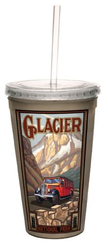 Tree-Free Greetings cc33100 Scenic Glacier National Park Bus by Paul A. Lanquist Artful Traveler Double-Walled Cool Cup with Reusable Straw, 16-Ounce