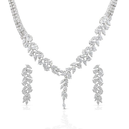 -. Title : JanKuo Jewelry Rhodium Plated Bridal Marquise Leaf Cubic Zirconia Necklace Earrings Jewelry Set, 17.5"