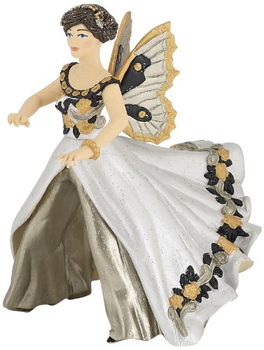 -. Feature : This beautiful elf features sparkles in her hair and a gold, silver and white gown and has sparkly wings / She can ride Papo horses, unicorns and Pegasus / Papo strives to manufacture long-lasting, high quality fantasy figures that are hand painted / Mix and match with other Papo figures and animals / Part of the Fantasy Collection