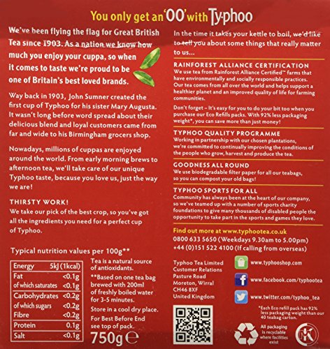 -. Feature : Refreshing bright in color and brisk in flavor / Authentic Typhoo Tea from England / Typhoo decaf is Britain's most popular decaf tea. / Now available in a resealable foil bag to improve freshness.