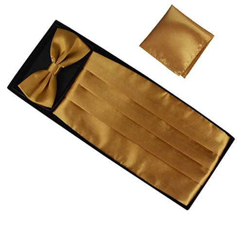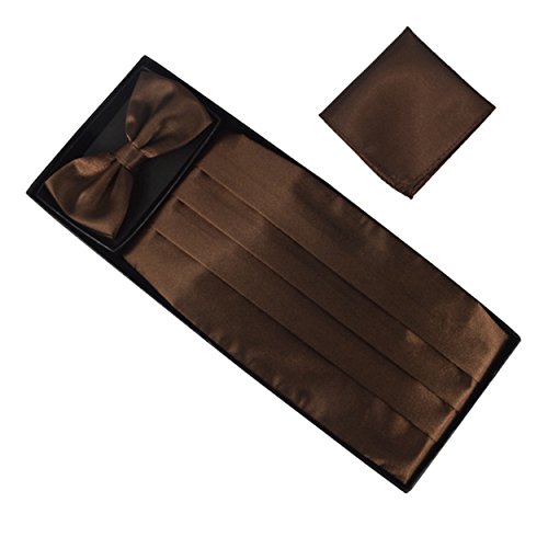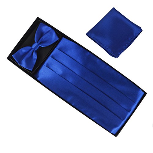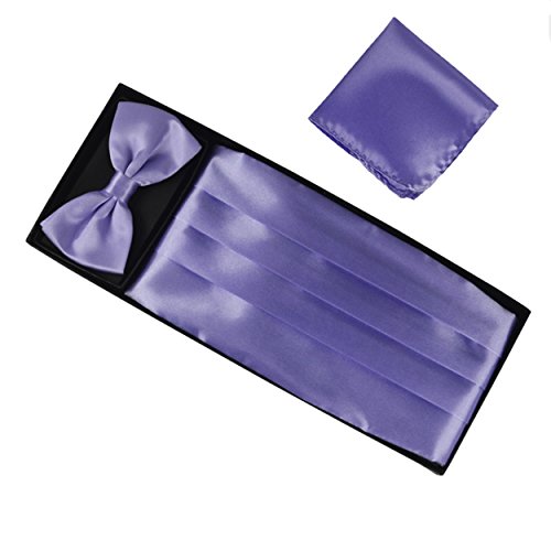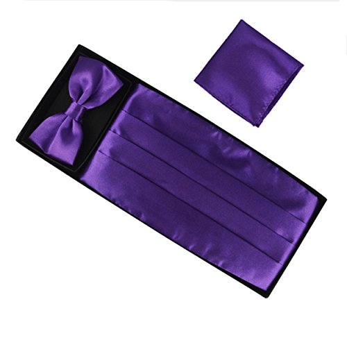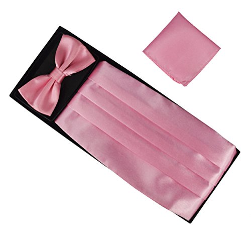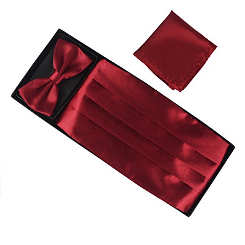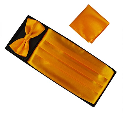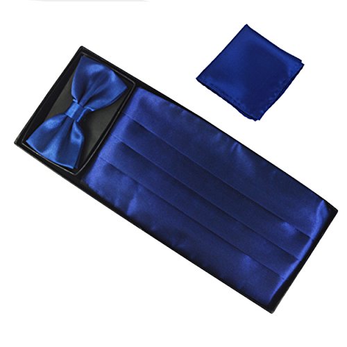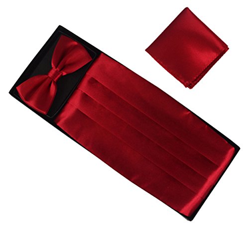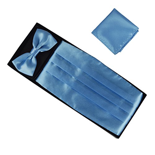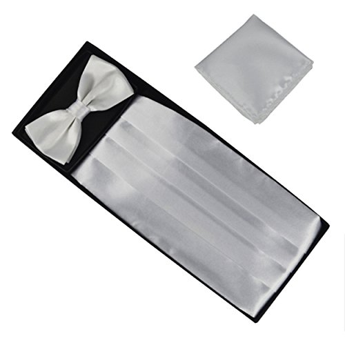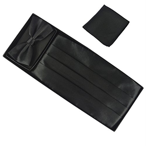 | (Aminiture)/Accessories/Ties/DIRECT FROM USA/Mens Solid Color Satin Cummerbund Bowtie Pocket Handkerchief Set |
