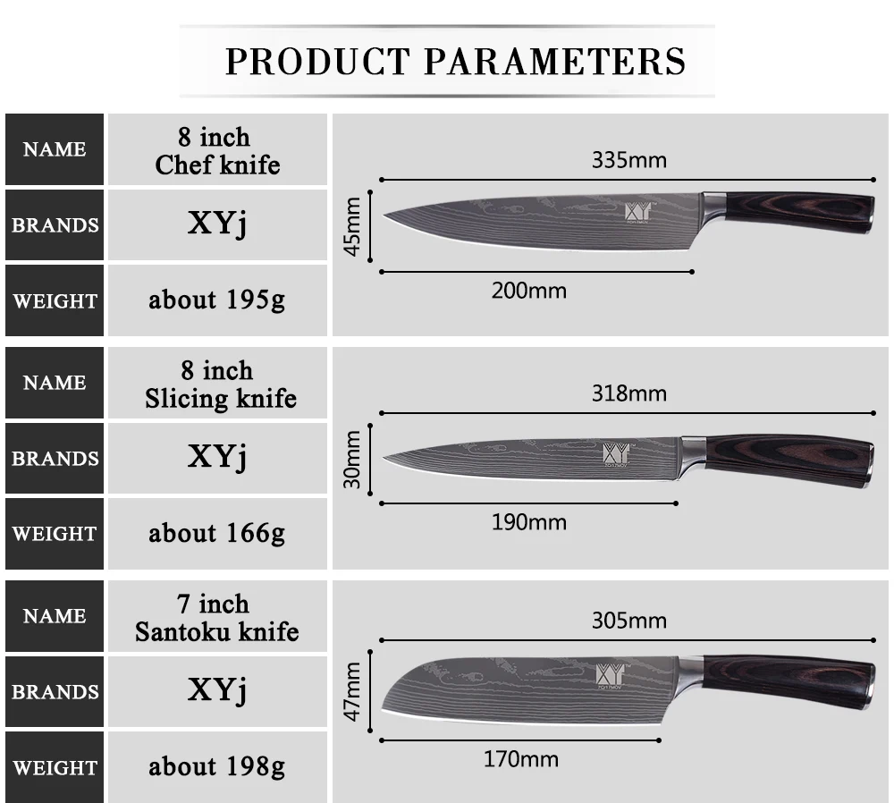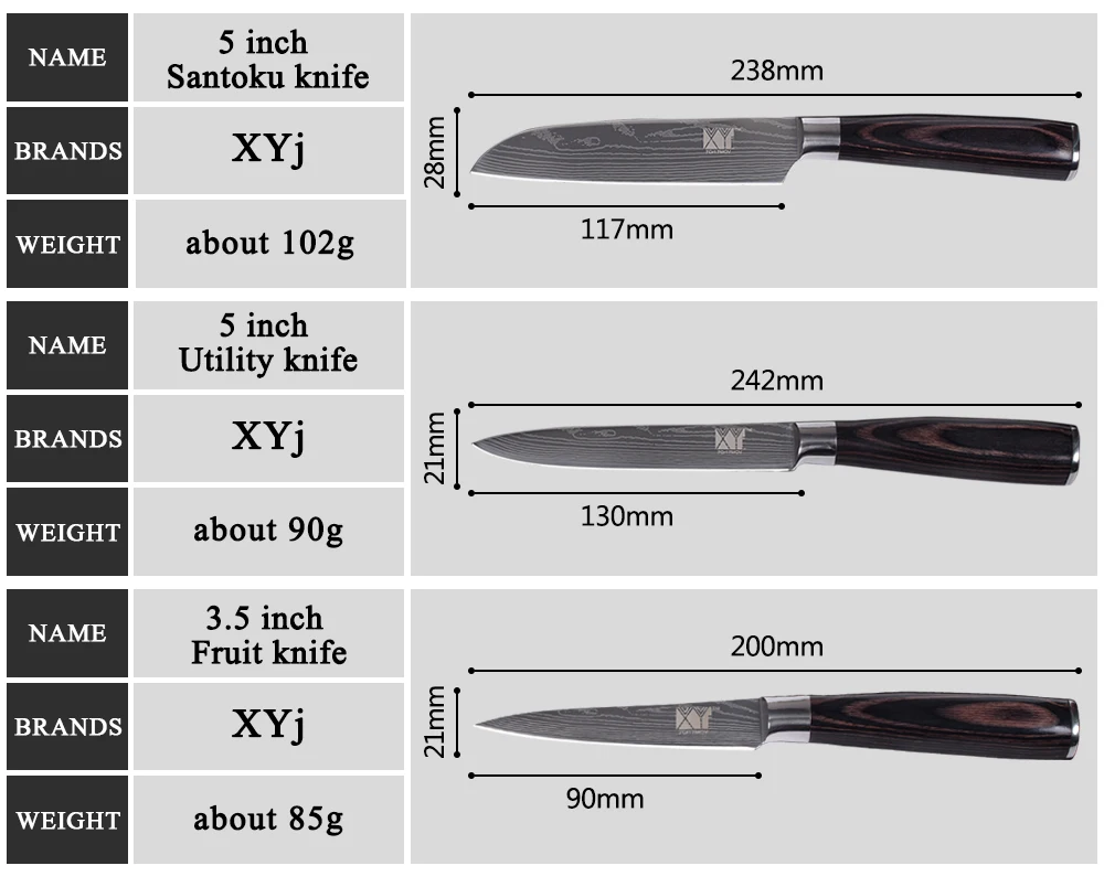Knife Size:3.5 inch, 2*5 inch, 7 inch, 8 inch, 8 inch