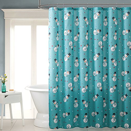 Holiday Winter Fabric Shower Curtain: Snowman Design, Aqua Teal Blue Red White, 72" x 72" inch