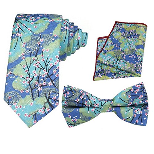 Ukerdo Men's Party Bow Tie Skinny Necktie Pocket Square Set Accessories
