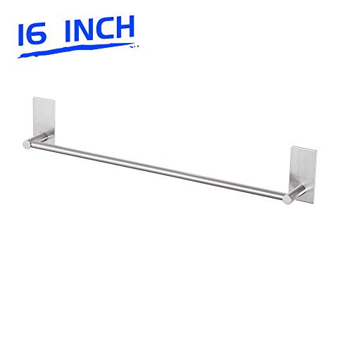 Brushed Stainless Steel Towel Bar Holder Adhesive Wall Mounted Bathroom Towel Rack Rod for Kitchen and Washroom, 16 Inches