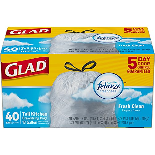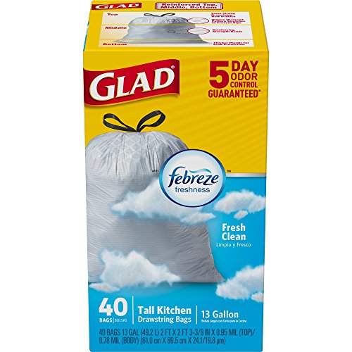 -. Title : (Pack of 3) OdorShield Tall Kitchen Drawstring Glad Trash Bags with Febreze freshness, Fresh Clean, 13 Gallon, 40 Count