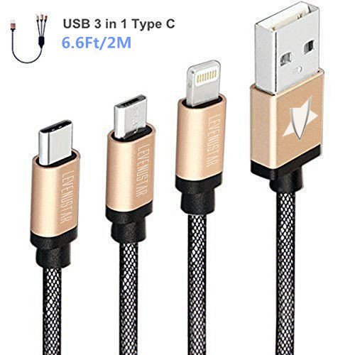 -. Feature : 3 in 1 cable: 6.6 feet (2m) length is optimal for use with hard-to-reach USB ports and out-of-sight wall chargers. Best for Travel with one combo cable to perform 3-in-1 functionality of Type-C ( charging function) / lightning(charging and data transfer function) / micro-USB (charging function) / Fast charging and Rapid Sync (data transferring function) for iPhone 6S Plus, iPhone 6S, Iphone 6 Plus, Iphone 6 etc. / Fast charging speed (no data transfering function) to your Android or Windows devices with Micro USB and Type C USB / Compact Lightning Connector head works with nearly all cases. / Manufactured by LeVenustar 1 Year Warranty.
