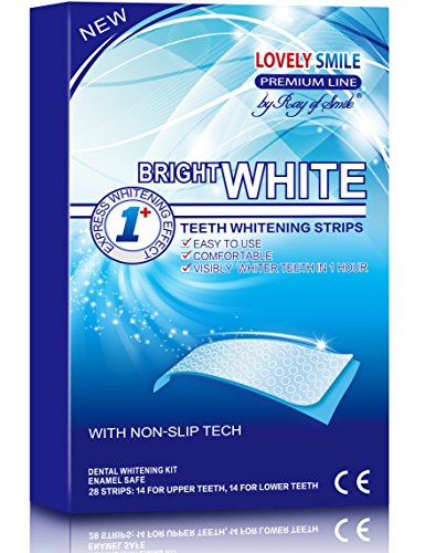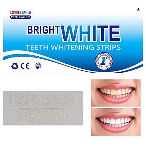 Why should you spend hundreds of dollars for teeth whitening at your dentist? LOVELY SMILE PREMIUM LINE Teeth Whitening strips bring the same level of teeth whitening. Whiter teeth in just one hour and the results last up to 12 months. Bright White Whitening Strips use the Revolutionary non-slip Tech - You can talk and even drink water while whitening teeth. LOVELY SMILE PREMIUM LINE Whitening Strips will not slip or leave behind messy residue. Use for 60 minutes, once or twice a day for a Stand Out Smile. You will start seeing results after just 1 hour. Full results after completion of kit (14 Treatments). LOVELY SMILE PREMIUM LINE best at-home whitening is as effective as $300-500 whitening by a dentist. Enamel safe and easy application. Fits each person's unique smile and comes off clean. Enamel and gum Safe. It's alluring and magnetic, and best of all, it's easily within your reach. These Whitening Strips use the same ingredients like the popular leading products on the market, but the costs are only a third of the price, so you can use them more often to always have a beautiful Bright White Smile. No matter what you do, your beautiful bright white smile always shines through with LOVELY SMILE PREMIUM LINE Whitening Strips!Feature