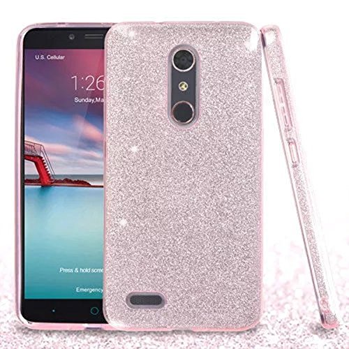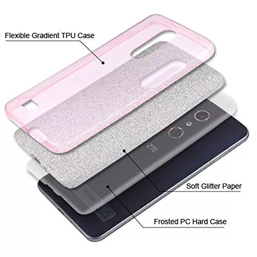 ZTE Zmax Pro Case,ZTE Carry Z981 Case, DAMONDY 3 In 1 Bling Flexible Gradient Ultra Thin TPU Soft Glitter Paper Forsted PC Hard Back Cover Case for ZTE Zmax Pro z981/ ZTE Carry -pink