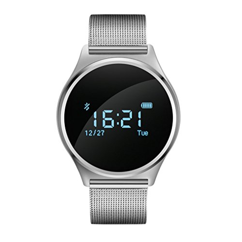 -. Feature : New Fashion and Luxurious Watch:2017 new fashoin design with round touch screen dispaly,steel or leather strap,luxurious and beautiful. / Sports and Fitness Tracker:with blood pressure monitor and heart rate monitor,always monitoring your body condition and outdoor activities. / Health Management:with sleeping monitor,sedentary reminder.the watch can record your sleeping data and other data of your body,which helps you keep better and healthier habits. / Intelligent Reminder:with call reminder and message reminder,never miss important calls,the APP message(including Facebook Twitter and so on) reminder makes you always be online. / Time display and alarm clock,phone finding,compatible with both Android (4.4 and above) and IOS (8.0 and above).