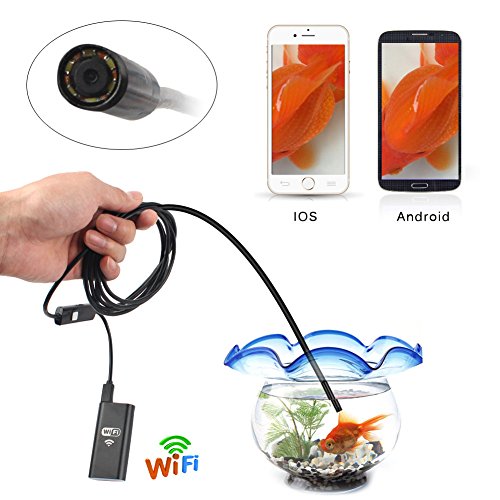 Wireless Endoscope, JINGLESZCN WiFi Borescope video Inspection Camera 2.0 mp HD Snake Pipe Camera with 8 adjustable LED Light for IOS and Android Smartphone iPhone Samsung Tablet,Black 2m/3.5m (2m)