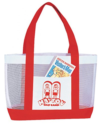 -. Feature : Mesh Tote Bag / Size - 19 W x 12 H x 4-1/2 D in. / Color - Red / Material - 600D polyester with nylon mesh / Case of 48