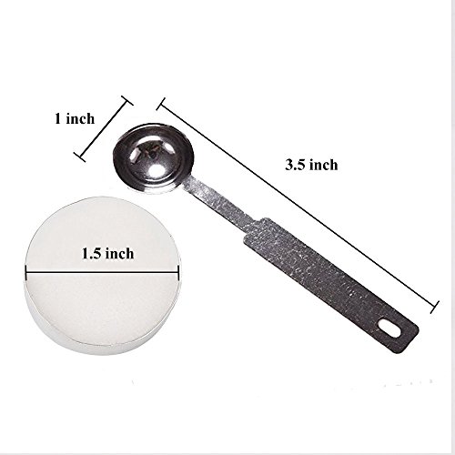 - Spoon:made of stainless steel,1.5"*1.5",3ml capacity,and wipe it easily if it get black from heating;Tea Wax:1.5"*1.5",smokeless,environmental friendly