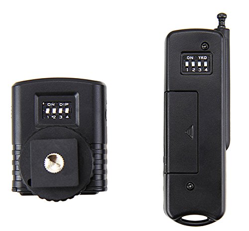 -. Feature : MC-DC2互換リモートシャッターユニット(電波式)。機能:シャッター、3秒タイマーシャッター / 別売りのケーブルを追加購入することで、他社カメラにも接続できます。 / 主な対応機種:ニコンDf、D750、D610、D7200、D5500、D5300、D3300、P7800など、MC-30対応端子をもつ機種。 / ディップスイッチの組み合わせで16パターンの信号に対応し、複数使用でも混線を防ぎます。 / 同梱物:送信機、受信機、ケーブル、CR-2電池、23A電池、マニュアル(英文)※日本語簡易マニュアル付属。