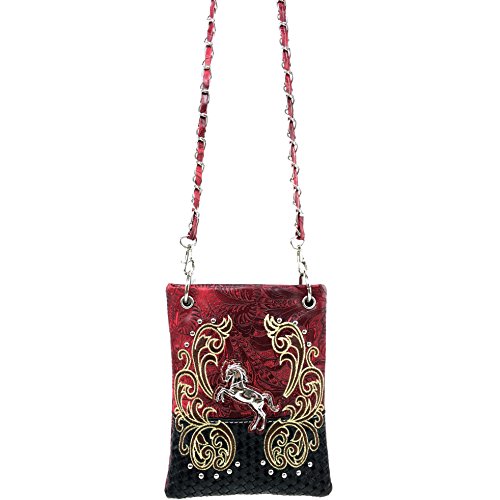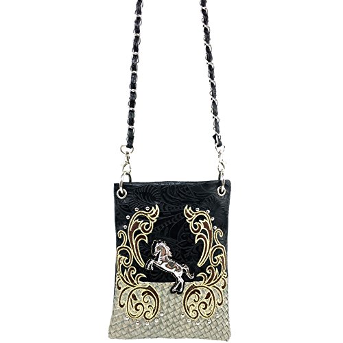 -. Brand : Justin West -. Department : womens -. Feature : Silver Horse Embellishment, Embroidered Flower, Duo Texture, with Studded Rhinestones / Premium Western Tooled Texture / Top Magnetic Closure with Interior Side Pocket / High Quality Materials and Superior Details Craftsmanship / 25.5″ long shoulder strap - Approx Size 8″X 6″ -. PackageQuantity : 1 -. ProductGroup : Shoes -. ProductTypeName : HANDBAG -. Title : Justin West Western Embroidered Weaved Tooled Horse CrossBody Mini Handbag Phone Messenger Purse