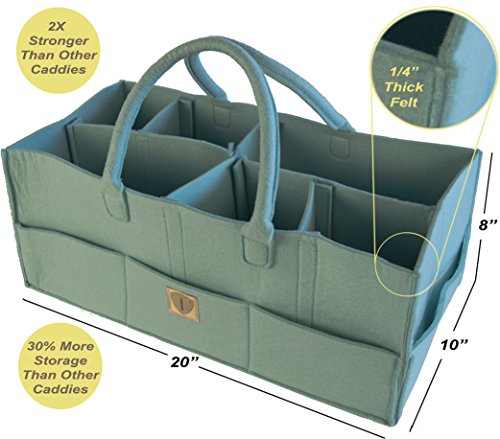 I NEVER KNEW BABIES NEEDED SO MANY DIAPERS AND CLOTHING CHANGES UNTIL I BECAME A MOTHER!Are you a new Mom, know of one or are expecting? This diaper organizer caddy is essential for all parents! Infants need changing up to 10 times a day, so make the process safe and efficient with all their items at arms reach, in this portable, stylish modern carry tote!- Also very handy if you have a multi-level home as anyplace can be a makeshift changing area with all your diapering and clothing needs.- We've surveyed what parents wanted and took all the feedback to incorporate into this spacious functional caddy with customizable dividers! It is larger, sturdier, offered more dividers and comes in 4 colors to compliment any nursery and home. It is made of premium quality 100% polyester felt, with top notch stitching and craftsmanship- It's very versatile and can be used for toys, books, arts and crafts when your child is older, or use it for your goods! Our caddies are backed by our lifetime product replacement warranty and no hassle money-back guaranteed, so try them risk-free now! >>>Please do no miss out on this new launch price promotion by clicking the yellow [ADD TO CART] button now! 0 |