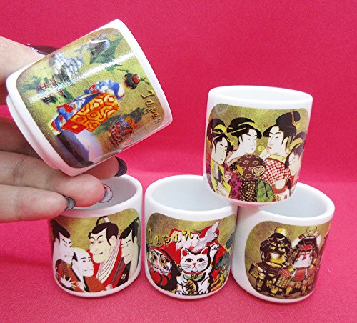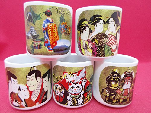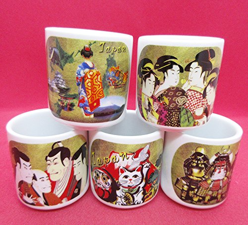 Product Description Sake Cup 5 Sakazuki Set japan is a Mino Ware Sake cup set with prints of Ukiyoe. Mino ware is one of the traditional Japanese ceramics made in Gifu Prefecture. 0