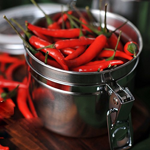 AIRTIGHT DESIGNED Coffee Canister: With clear flip top and locking steel clamp, our hinged, clamp-top lids with silicone rubber gasket help to protect foods remain fresh for a long time, also can be used as lunch-box for ourdoor activities