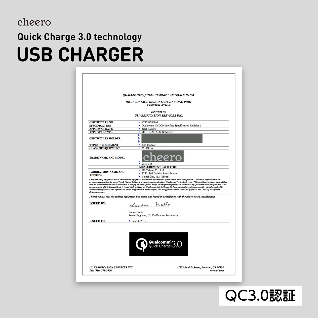 Quick Charge 3.0 compatible AC adapter.