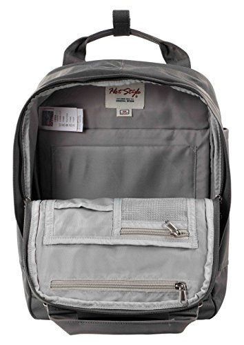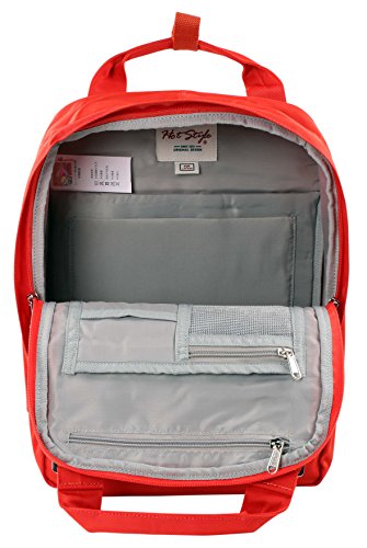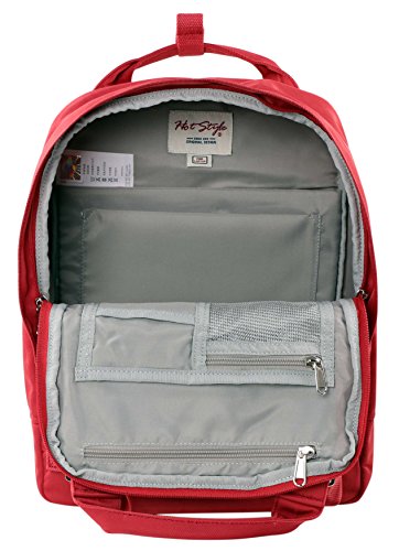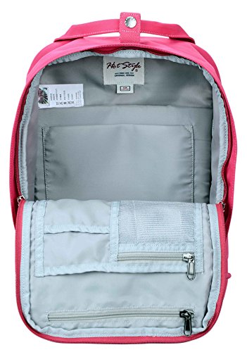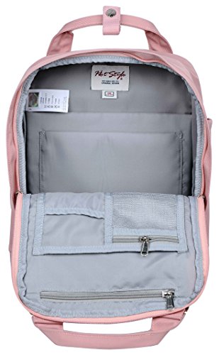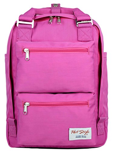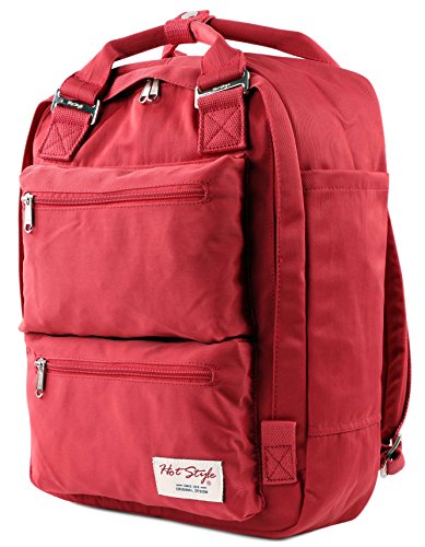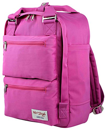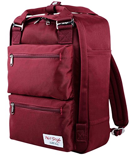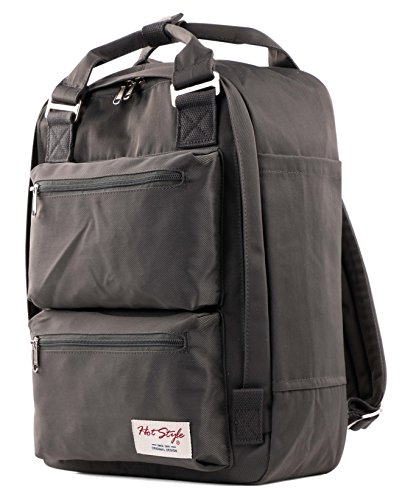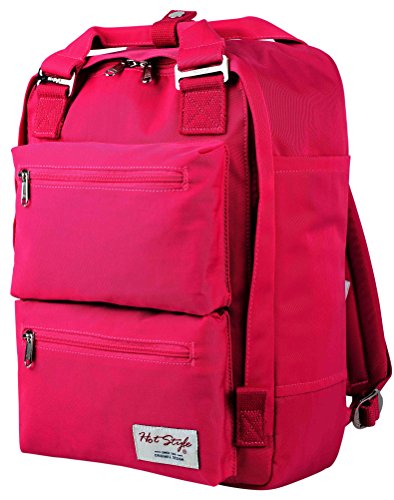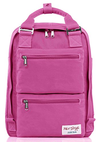 Product Description With a convertible design that offers versatile carrying options, the HotStyle DayBreak Backpack offers utility and plenty of storage to pack and organize your stuffs well for day to day city adventure. Features This small personalized daypack is constructed by premium waterproof twill polyester, features pieces of high-quality hardware accents and multiple pockets for storage and organization. This fashion laptop rucksack has a zipper opening into the main compartment and includes a padded laptop pocket and a tablet sleeve, an interior zipper pocket, a small interior mesh zipper pocket, two slip sleeves (one as large as iPhone 7 and the other as large as iPad Mini), two front pockets to hold accessories, one handy zipper pocket on the back panel, and two open side pockets for bottles. With full padded and adjustable straps and dual top handles, this cute backpack purse provides different carrying options to suit your travel style. Specifications ? Model: HotStyle DayBreak Backpack (Mini) ? Fabric: Water resistant polyester ? Dimensions: 10.6 x 14.6 x 5.1 inches (L x H x D) ? Maximum Laptop Dimensions: 14.2 x 10.2 x 1 inches / 36 x 26 x 2 cm ? Capacity: 976 cu in / 16 Liter or 30 pounds ? Shoulder Straps: Adjust from 16 to 32 inches ? Top handle drop: 3 inches ? Weight: 1.5 pounds Warranty ? 1-Year-Hassle-Free-Warranty - Replacement, refund, whatever it takes. ? HotStyle(R) Packs is the exclusive agent for original HotStyle(R) packs and gear on Amazon. 0