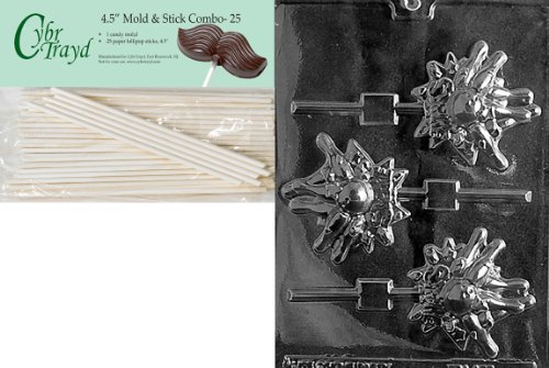 Cybrtrayd 45St25-S077 Bowling Lolly Sports Chocolate Candy Mold with 25-Pack 4.5-Inch Lollipop Sticks