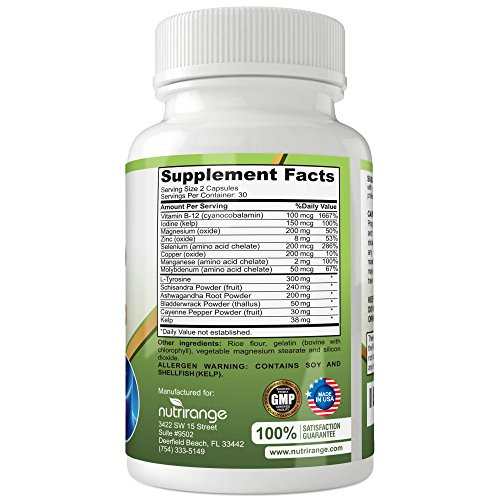 - Complete formula with premium natural ingredients including Iodine (Kelp), L-Tyrosine, Cayenne Pepper, Vitamin B12 and Bladderwrack Powder.