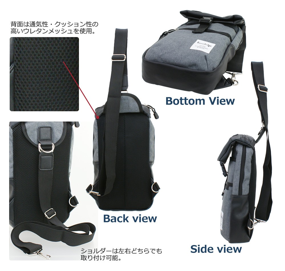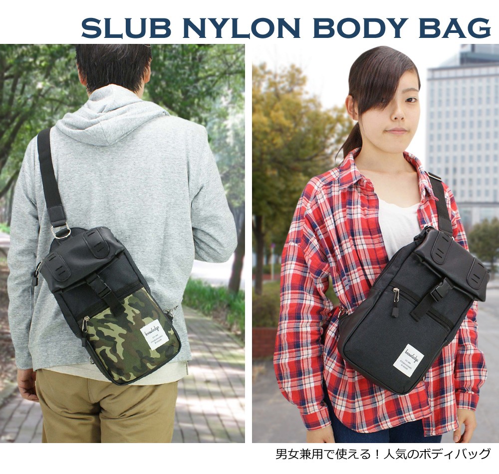 味のある杢ナイロンと合皮で作られたカブセボディバッグ