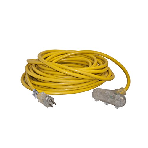 ALEKO EC12G3P50 ETL Heavy Duty 50' Extension Cord SJTW Triple Tap Lighted Plug 12/3 Gauge Indoor Outdoor, Yellow