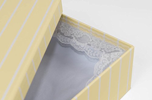 -. Feature : Gender neutral baby box. / Acid-Free tissue included. Satin Ribbon included, lace inside. / Available in Sundae Stripe Lemon. / Colorful, Strong, sturdy, handmade with care. / Carbon neutral, environmentally friendly.