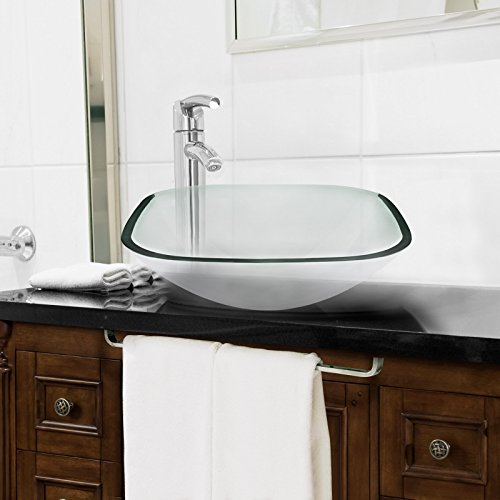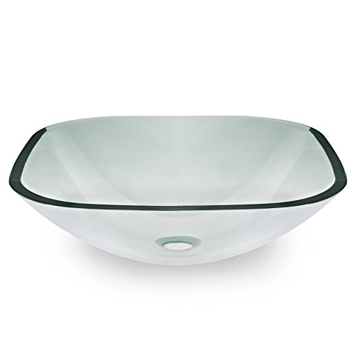 Tempered Glass Vessel Bathroom Vanity Sink Square Bowl, Clear Color