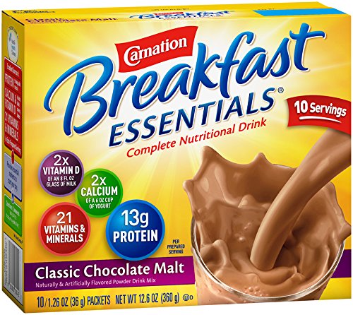 Carnation Instant Breakfast Essentials Complete Nutritional Drink Rich Milk Chocolate Powder 6 boxes containing 10 - 1.26oz packetsFeature